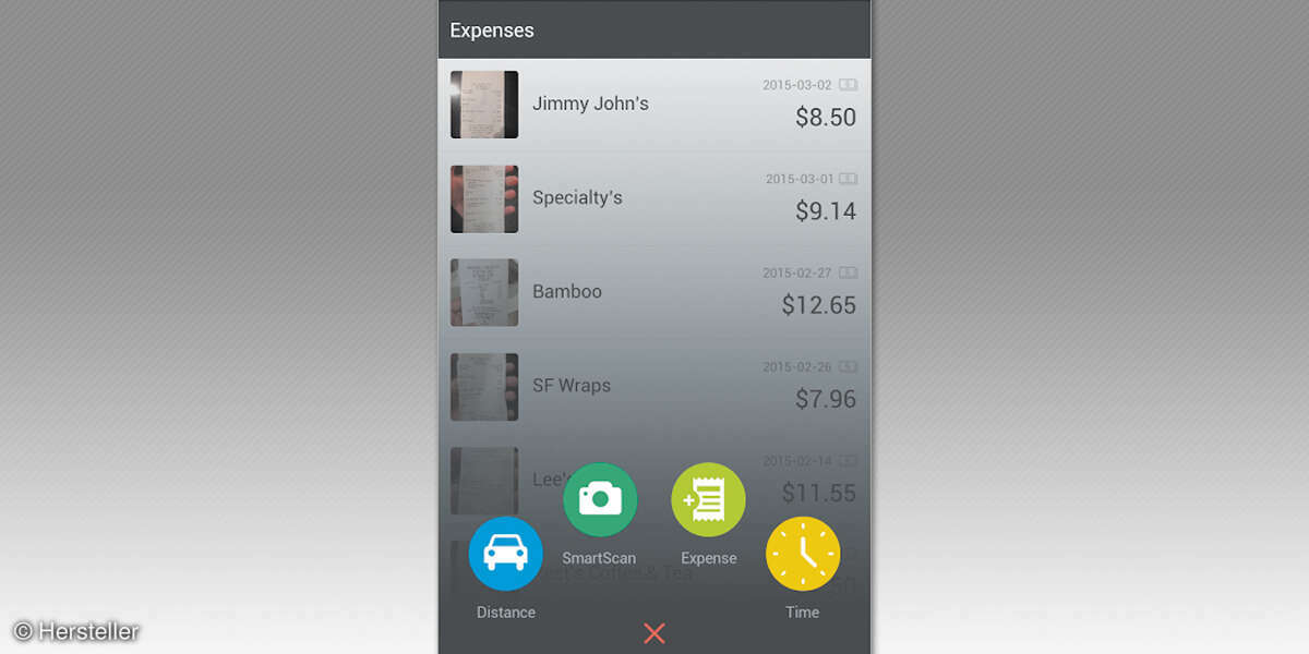Mit Expensify scannen Sie Belege und Rechnungen einfach mit der Smartphone-Kamera und weisen sie unterschiedlichen Kostenabrechnungen zu.