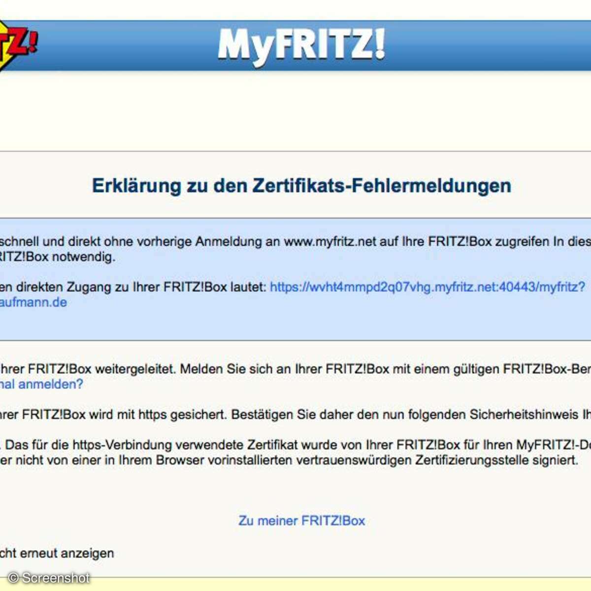 Beim Wechsel zur Fritzbox warnt Ihr Browser vor einem möglicherweise unsicheren Zertifikat. Diese Warnung können Sie ignorieren.