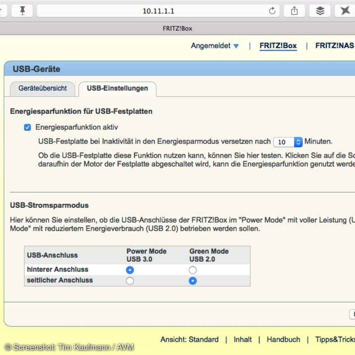 Nicht alle USB-3.0-fähigen Geräte werden von der Fritzbox als solche erkannt. Teilweise schaltet die Box diese auf das deutlich langsamere USB 2.0 herunter, so auch bei unserem Test. In diesen Fällen bleibt Ihnen nichts anderes übrig, als auf andere Hardware zu wechseln, es sei denn ...