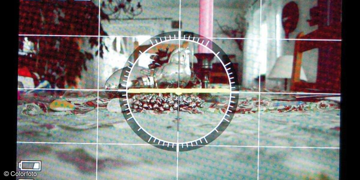 Zur Aufnahmekontrolle auf zwei Ebenen lässt sich ein virtueller Horizont einblenden.