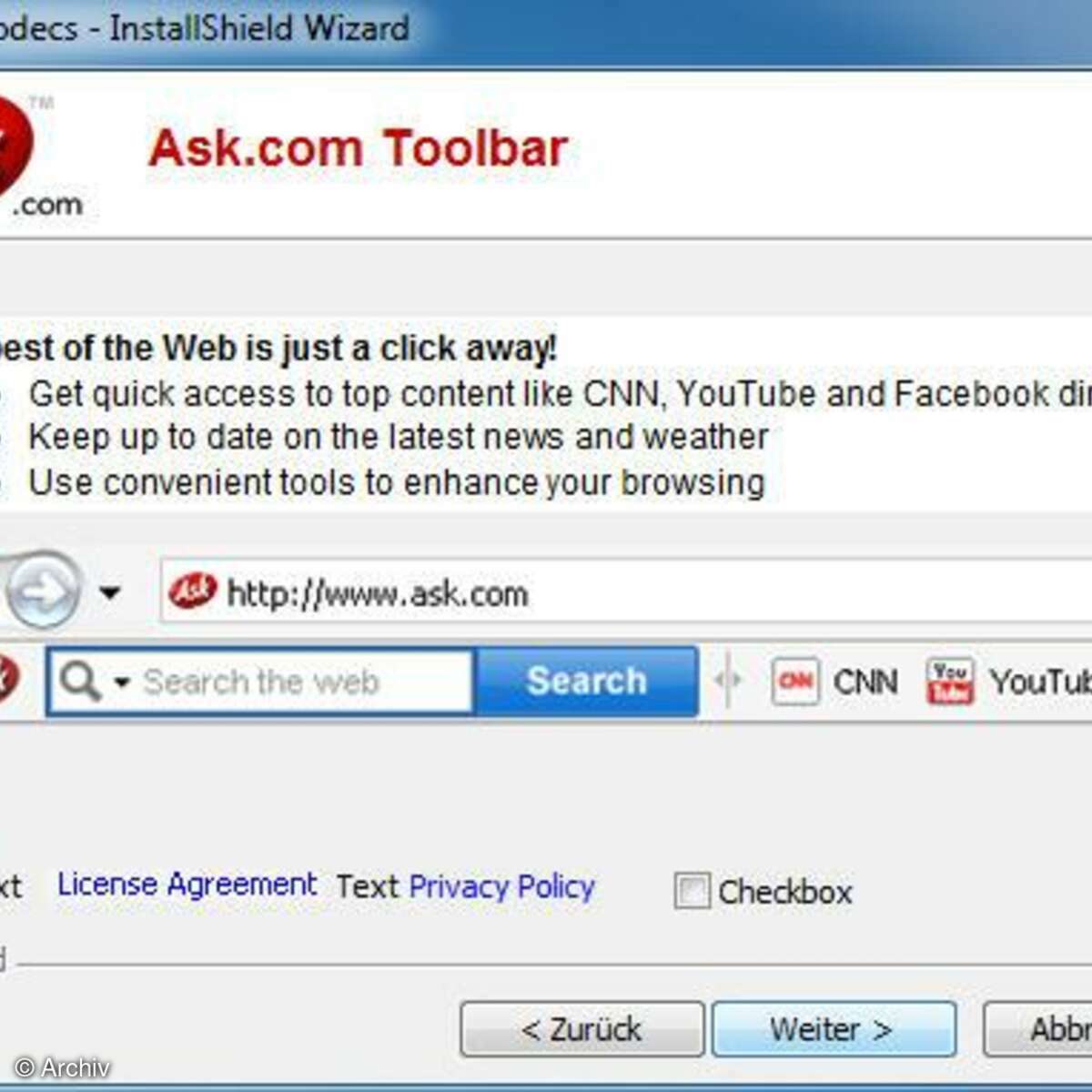 ... die angebotenen Zusatzprogramme ggf. deaktivieren, damit diese nicht automatisch mitinstalliert werden.