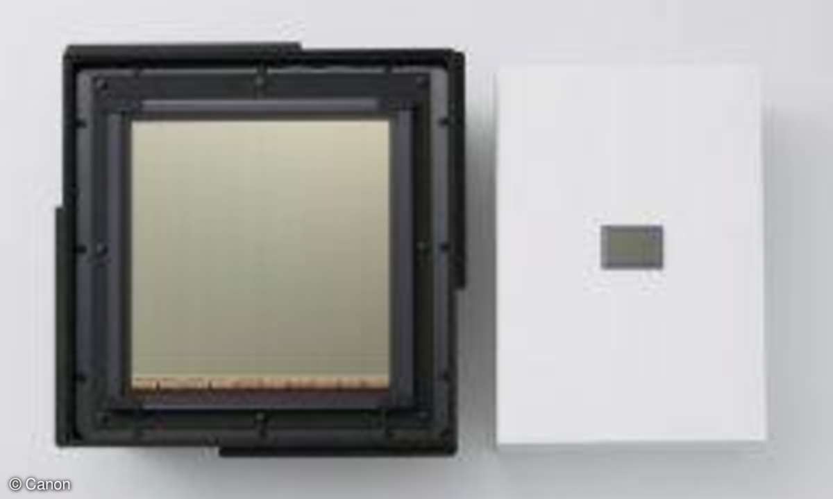 Canon hat die erfolgreiche Entwicklung des größten CMOS-Sensors der Welt bekannt gegeben. Mit Abmessungen von 202 x 205 mm ist er etwa 40 mal so groß wie der Vollformat-Sensor einer Canon EOS 1Ds.