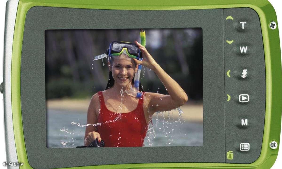 Lediglich ein 8-fach digitalen Zoom hilft beim heranholen entfernt schwimmender Fische - bei 5 Megapixel dürfte dann die Auflösung allerdings extrem gering sein. Das Kontolldisplay hat eine Bilddiagonale von 2,4 Zoll. Die Schnorchelerlebnisse können zusätzlich als Bewegtbild festgehalten werden. Rolleis Sportsline 50 dreht Videos mit bis zu 30 Bildern pro Sekunde im VGA-Modus.