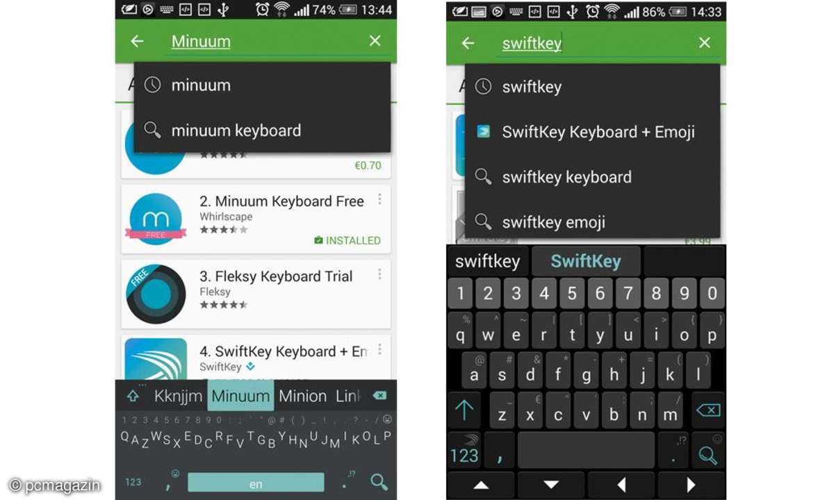 Seit der Version 4.3 sind in Swift- Key drei verschiedene Tastatur-Layouts integriert, die bis dahin nur in getrennten Apps zu haben waren. Damit lässt sich auf Tablets zum Beispiel die Tastatur in zwei spalten, damit der Benutzer im Landscape- Modus alle Tasten mit beiden Daumen erreichen kann. Und das Beste: SwiftKey ist seit Juni 2014 kostenlos verfügbar. Kostenpflichtig sind nur noch optionale Skins zur Verschönerung der Tastatur.