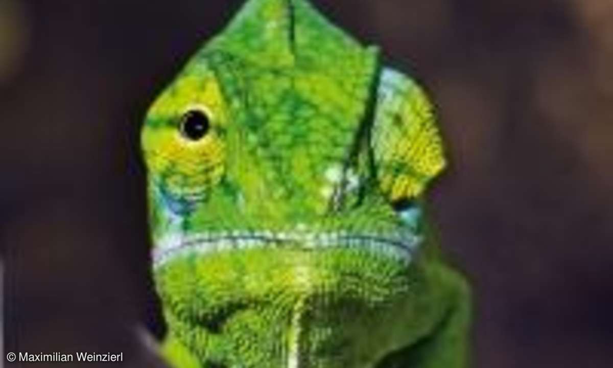 Chamäleon heißt auf Deutsch soviel wie "Erdlöwe". Und tatsächlich, wenn sich das Chamäleon in die Enge getrieben fühlt oder wenn ein Artgenosse ins Revier eindringt, dann reißt es schon mal das Maul auf wie ein Löwe. Auch die lappigen Anhänge am Kopf erinnern dann an eine Löwenmähne. Wir ...