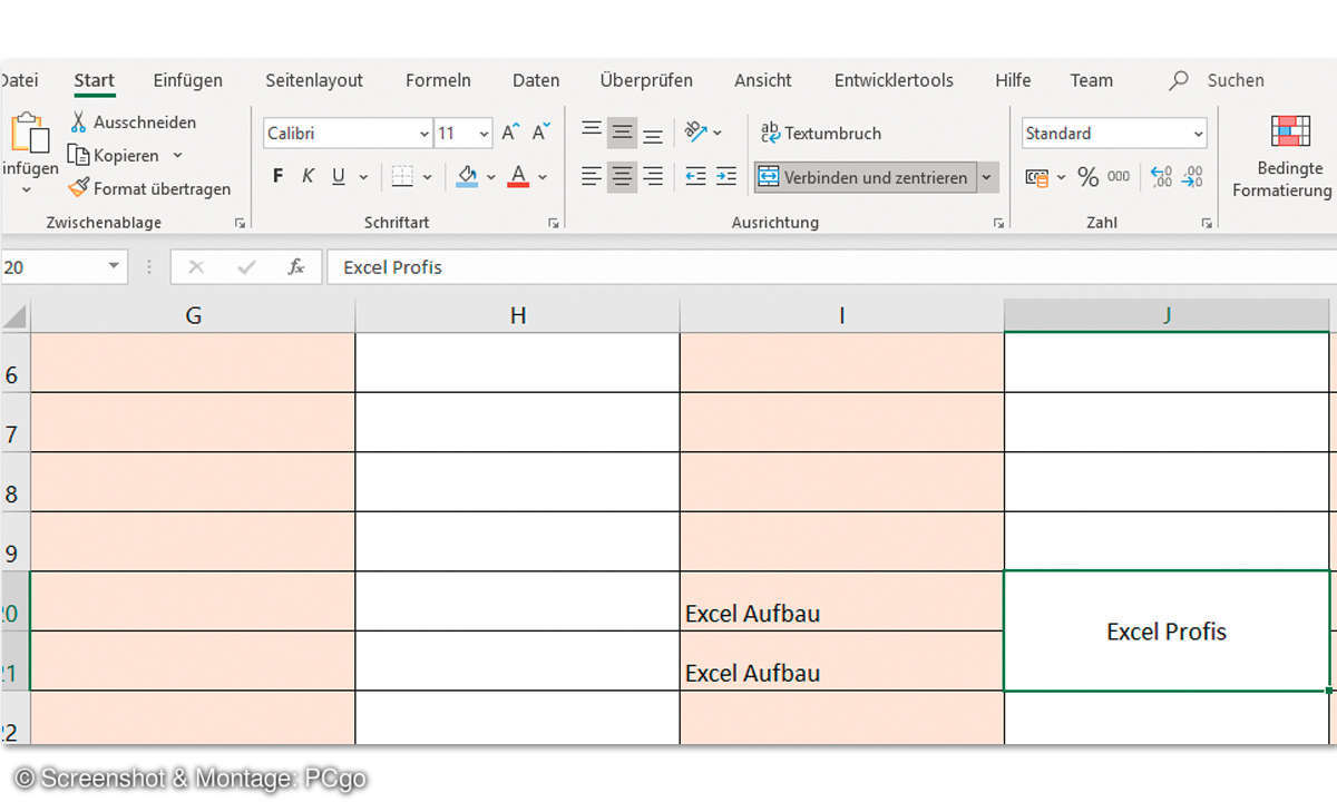 Anschließend tippen Sie in diese zusammengefassten Zellen das gewünschte Ereignis oder den anstehenden Termin ein. Die Möglichkeit des Verbindens und Zentrierens gibt es leider nicht, wenn Sie einen Bereich in eine Tabelle umgewandelt haben, wie es in der Jahresübersicht gemacht wurde.