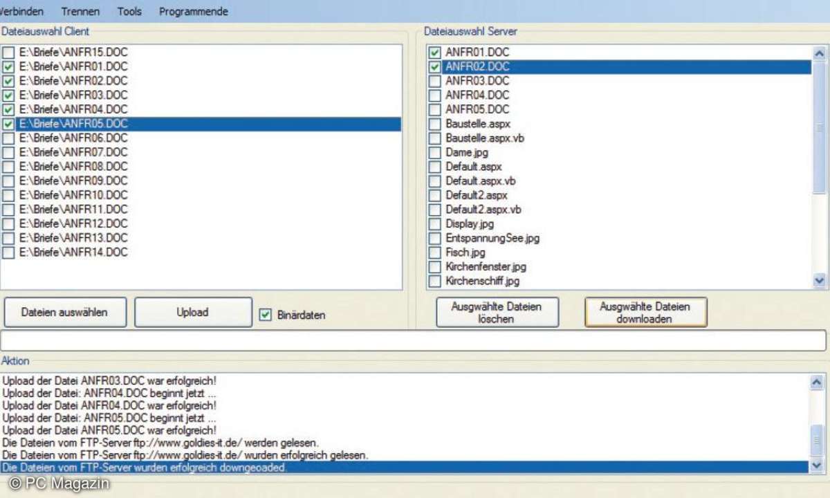 Für schnelle Up- und Downloads ist ein FTP-Programm nach wie vor erste Wahl. Obwohl das File Transfer Protokoll (FTP) ungefähr 35 Jahre alt ist, erfreut es sich immer noch großer Beliebtheit. Mit einem selbst geschriebenen FTP-Programm gestalten Sie die Funktionen und die Oberfläche nach Ihren persönlichen Wünschen.