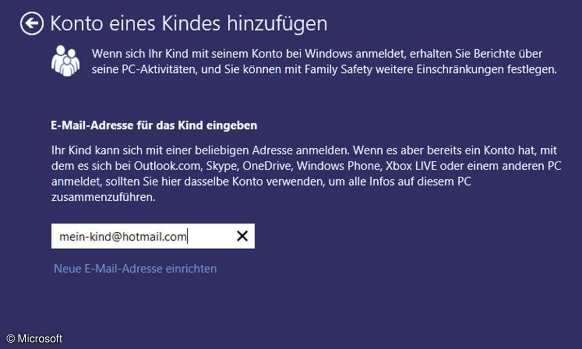 Für Familienmitglieder richten Sie über die Befehle Einstellungen und PC-Einstellungen ändern / Weitere Konten und Konto hinzufügen jeweils einen eigenen Account ein. Wichtig: Über die Option Konto eines Kindes hinzufügen schalten Sie selbst den Überwachungsmodus für dieses neue Konto ein. Sie erhalten dann Berichte über die Nutzung und können via "Family Safety" den Aufruf bestimmter Programme oder Dateien verbieten. Weiteres zu Rechten für Benutzerkonten in Windows 8 verrät unser Ratgeber.