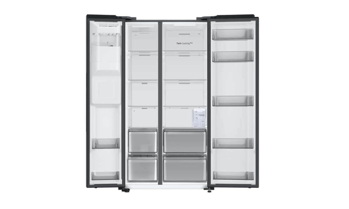 Der Samsung-Kühlschrank arbeitet dabei besonders geräuscharm und punktet mit einer „Precise Cooling“-Technologie, dank der Lebensmittel länger frisch bleiben und ihren Geschmack beibehalten. Für eine erfrischende Abkühlung, nicht nur im Sommer, sorgt zudem der integrierte Eis- und Wasserspender, der dank eines 4,5 Liter fassenden Tanks ohne Festwasseranschluss auskommt.