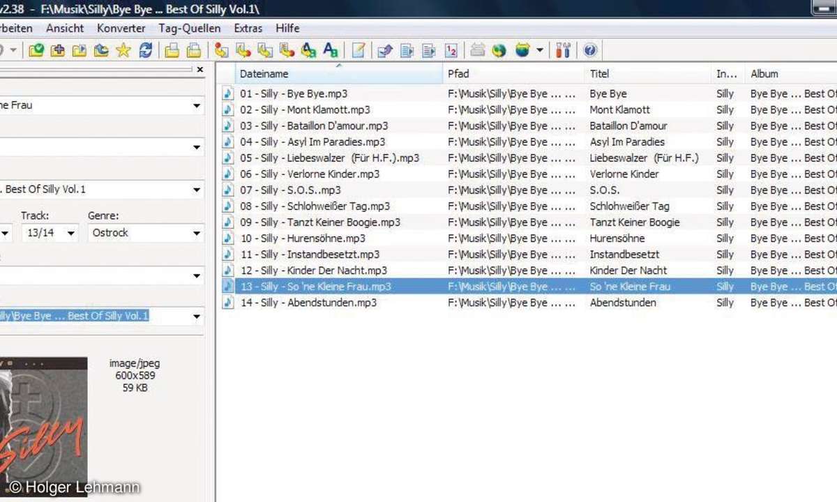Dazu gehören Informationen über den Interpreten, der Albumtitel, ja sogar das Plattencover und die Songtexte. Um solche Informationen einem Titel hinzuzufügen, können Sie die Freeware Mp3tag nutzen. Die Oberfläche ist weitgehend selbsterklärend. Über Datei/Verzeichnis wechseln rufen Sie alle Titel eines Albums oder Einzeltitel auf.