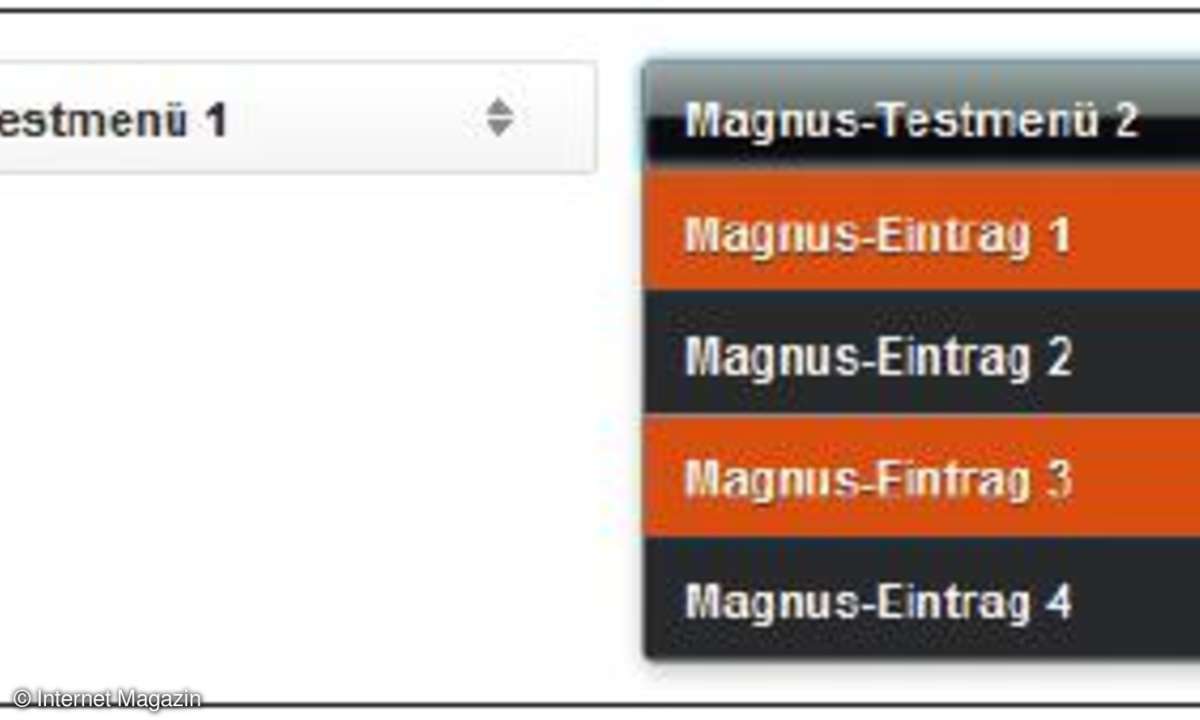 Mit Ascensor.js können Sie einer jeden Website in Windeseile einen unverkennbaren Charakter verleihen, indem Sie konventionellen Seitenaufbau, den wir alle von Browsern gewohnt sind, durch eine gleitende Animation der Inhalte benachbarter Seiten ersetzen.Auf einer Ascensor-gestützten Website liegen einzelne Seiten auf einem imaginären Schachbrett dicht nebeneinander. Wechselt der Benutzer von einer Seite zur nächsten, entschwindet das ursprüngliche Dokument aus der Sicht während die Zielseite hinein gleitet und den frei werdenden Platz im Browserfenster einnimmt.Ascensor.js bietet dem Benutzer als Navigationshilfe eine zweidimensionale Sitemap. Webbesucher können auf die einzelnen Navigationselemente klicken, um die betreffenden Seiten je nach ihrer relativen Position zueinander vertikal, horizontal, oder diagonal gleiten zu lassen.Das Modul eignet sich hervorragend zur Umsetzung von Websites mit knappen, aber strategisch positionierten Inhalten, welche den Besucher mit dem Flair einer gezielt überdimensioniert angelegten Animation beeindrucken sollen.Dropkick.jsGetestete Version: v1.0.0-2-g5b230fbAnbieter: jamielotteringKompatibilität: einschließlich Internet Explorer ab Version 7; vollständige Unterstützung für iOS setzt die Bibliothek Scrollability vorausPreis: Dropkick.js erlaubt es Ihnen, jQuery-basierte Navigationsmenüs ins Leben zu rufen. Zu den Stärken dieser Lösung zählt ihre Abwärtskompatibilität mit dem Internet Explorer ab Version 7 und die Unterstützung von iOS-Geräten. Um natives Scrollen unter iOS zu ermöglichen, benötigt Dropkick.js die Bibliothek Scrollability (joehewitt.github.com/scrollability/ ).In Browsern mit deaktiviertem Javascript greift dem Besucher ein Fallback-Mechanismus unter die Arme, welcher hier eine Navigation auf Basis ganz gewöhnlicher HTML-Elemente bereitstellt.jMenuGetestete Version: 1.8 vom Januar 2012Anbieter: MyJQueryPluginsKompatibilität.