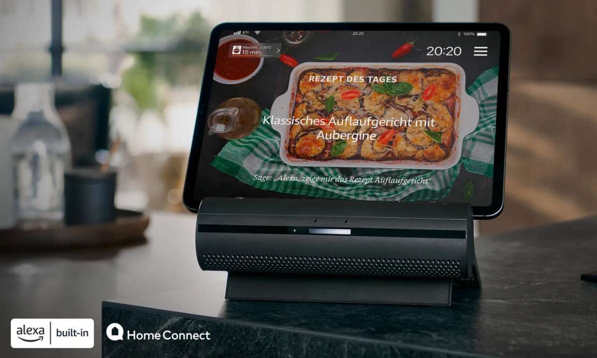 Dreh- und Angelpunkt der Smart-Home-Produkte von Siemens ist, zumindest in der Küche, das Smart Kitchen Dock. Hierbei handelt es sich um eine kompakte Dockingstation, auf der Smartphone oder Tablet abgestellt werden können. In Kombination wird so die Steuerung der Smart-Home-Produkte ermöglicht und das sogar per Sprachbefehls mittels Amazon Alexa.