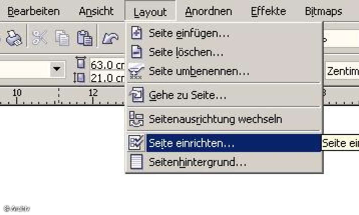 Dokumentlayout erstellen Öffnen Sie CorelDraw. Gehen Sie in die Eigenschaftsleiste, um Ihre Seite einzurichten. Geben Sie bei Seitenbreite und -höhe 21 cm Höhe und 63 cm Breite ein. Drücken Sie nach jeder Einstellung die [Eingabe]-Taste. Klicken Sie auf Dynamische Hilfslinien, damit orientiere...