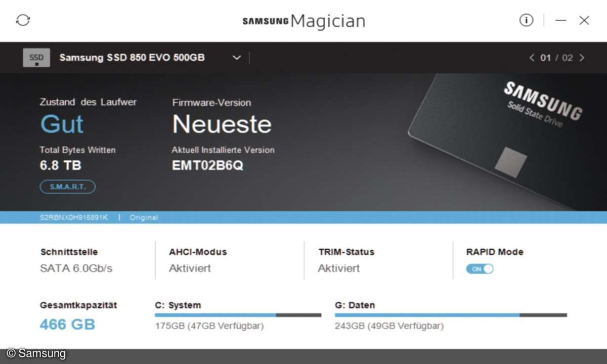 Bei einer Samsung 850 EVO beträgt der TBW beispielsweise 150 Terabyte. Das bedeutet über fünf Jahre gerechnet eine Schreibleistung von 82 Gigabyte pro Tag inklusive Wochenende, was bei den meisten PCs kaum erreicht werden wird.