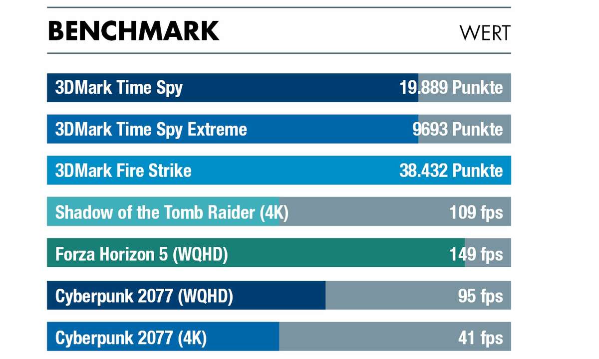 Abstriche muss man bei der Raytracing-Power machen. Mit 10.636 Punkten im Port Royal Benchmark liegt sie mehr oder weniger deutlich hinter allen erwähnten Karten zurück. Die 3886 erreichten Zähler bei Speed Way bestätigen diese Schwäche nochmals.