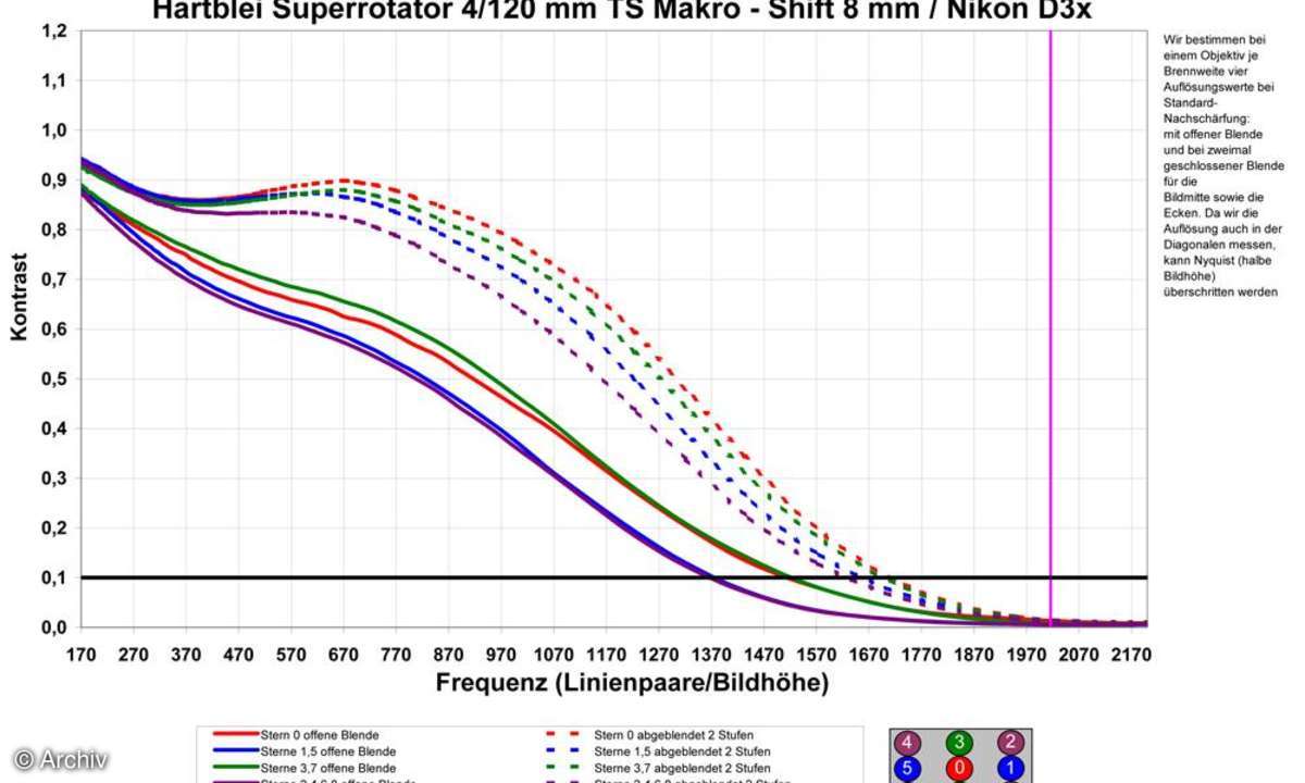 Ohne Shift ist das Hartblei ein Makro der ersten Güteklasse, das auch offen bedenkenlos verwendet werden kann. Bestwerte für Vignettierung und Verzeichnung runden das Bild ab. Die Kontrast-Einbußen im Shift-Betrieb sind deutlich, doch passt abgeblendet wieder alles - digital empfohlen.