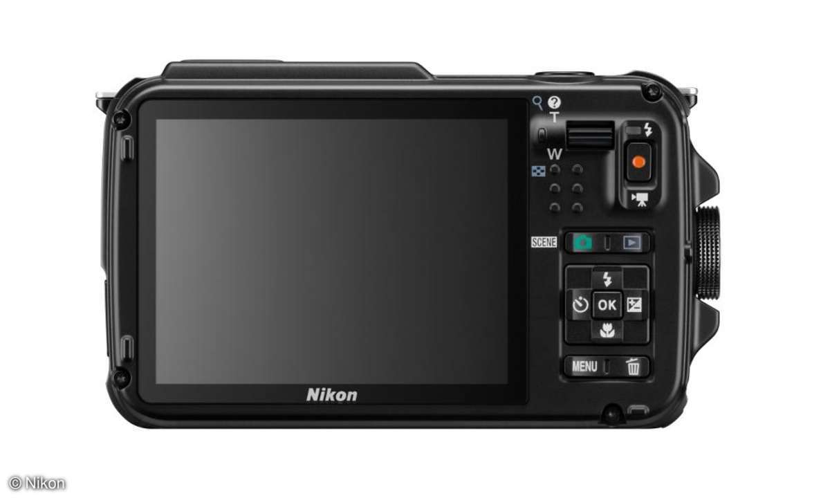 Die Displayhelligkeit ist über fünf Stufen einstellbar, wobei die Abstufung eher gering ist. Insgesamt ist die Displayqualität ein großer Fortschritt gegenüber dem Vorgängermodell Nikon Coolpix AW100 . Ein Videomodus mit Full-HD-Qualität und Stereoton gehört genauso zur Ausstattung wie ein Panoramamodus bis 360°, ein 3D-Modus und diverse Effektfilter.