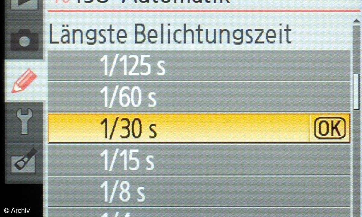 Allerdings hätte man das Procedere für versierte Anwender durch die Möglichkeit beschleunigen können, im Set-Menü direkt in den gelb markierten Feldern mit dem Einstellrad Werte verändern zu können. Möglich ist das über die Fn-Taste, der sich eine von fünf zur Wahl stehenden Funktionen zuordnen lässt: Selbsauslöser, Aufnahmebetriebsart, Bildqualität/-größe, ISO-Empfindlichkeit und Weißabgleich.