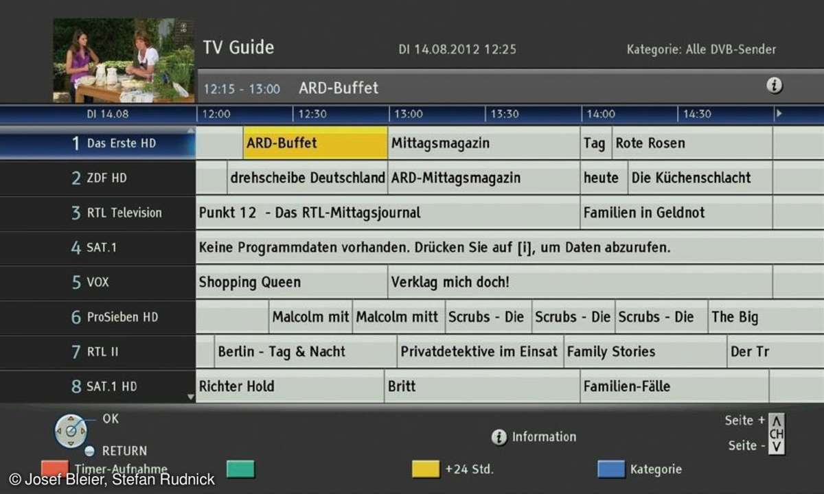 Das bedeutet auch eine klasse Bildqualität. Full-HD-Quellen erscheinen gestochen scharf mit brillanten Farben, sodass ein äußerst plastisches Bild entsteht. Bei SD-Quellen sind nur minimale Doppelkonturen an harten Objektkanten bei ganz genauem Hinsehen wahrnehmbar. Für erfahrene Nutzer stellt Panasonic zudem Regler für die Bildkalibration bereit. Und der Rekorder greift wie die Player auf viele Internet-Angebote zu. Zusätzliche Online-Inhalte gibt es über HbbTV: Der interaktive Videotext führt nicht nur zu Programm begleitenden Informationen, sondern auch zu Mediatheken der TV-Sender.