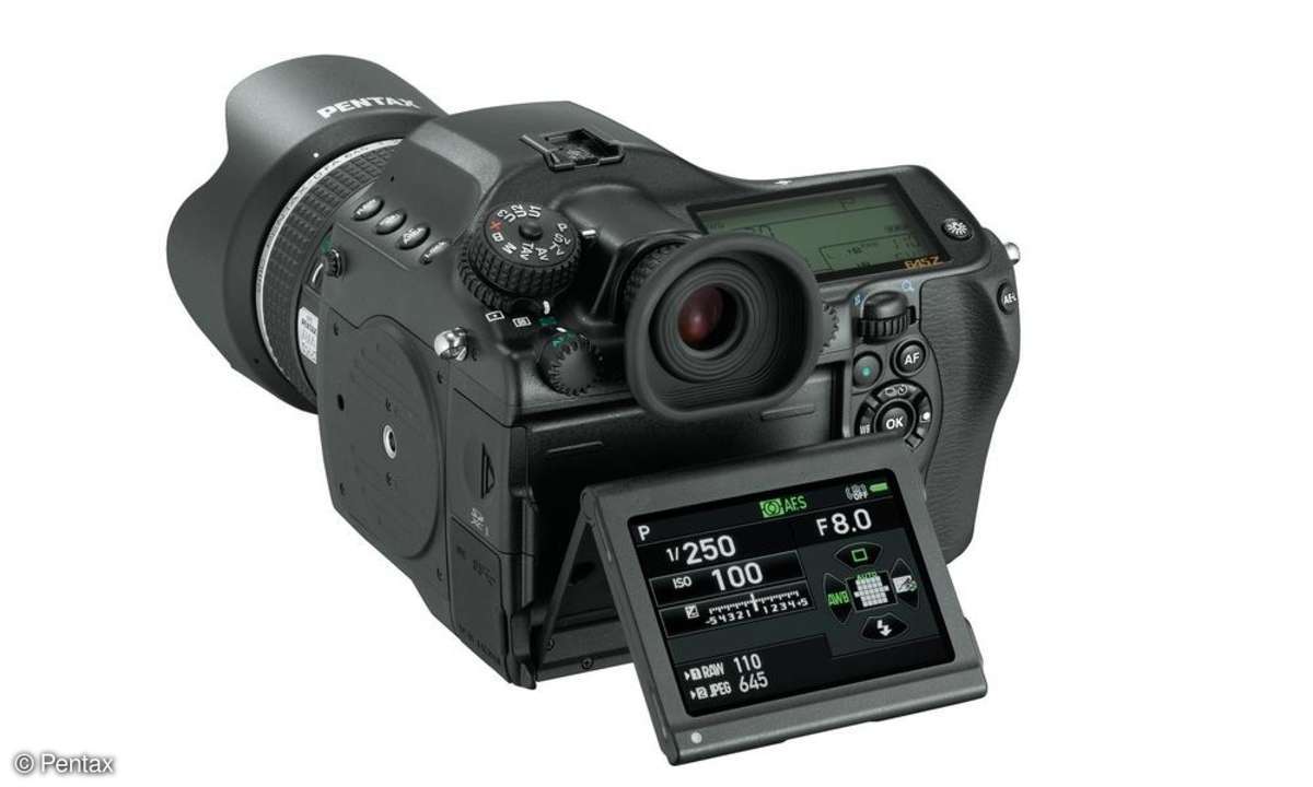 Der Bildprozessor Prime III und ein größerer Pufferspeicher erlauben jetzt schnellere Bildfolgen. Für Serienbildbelichtungen gibt Pentax 3 B/s (gegenüber 1 B/s bei der 645D) an. Gemessen haben wir 2,9 B/s bei JPEG und RAW. Maximal 10 RAW oder JPEG-Aufnahmen sind mit voller Auflösung möglich.