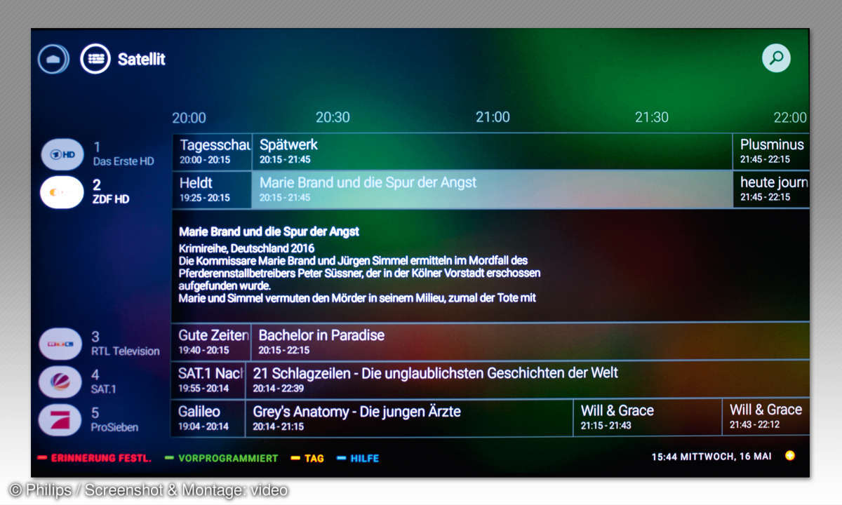 Dabei werden die TV-Apps, die Philips selbst programmiert hat, immer besser. Sendersuche, -Sortierung und Auswahl sind deutlich besser gelöst als bei vielen Mitbewerbern, die Netzwerk-Medienvarianten umfassend. Einzig unser Bluetooth-Kopfhörer wollte sich nicht auffinden lassen.