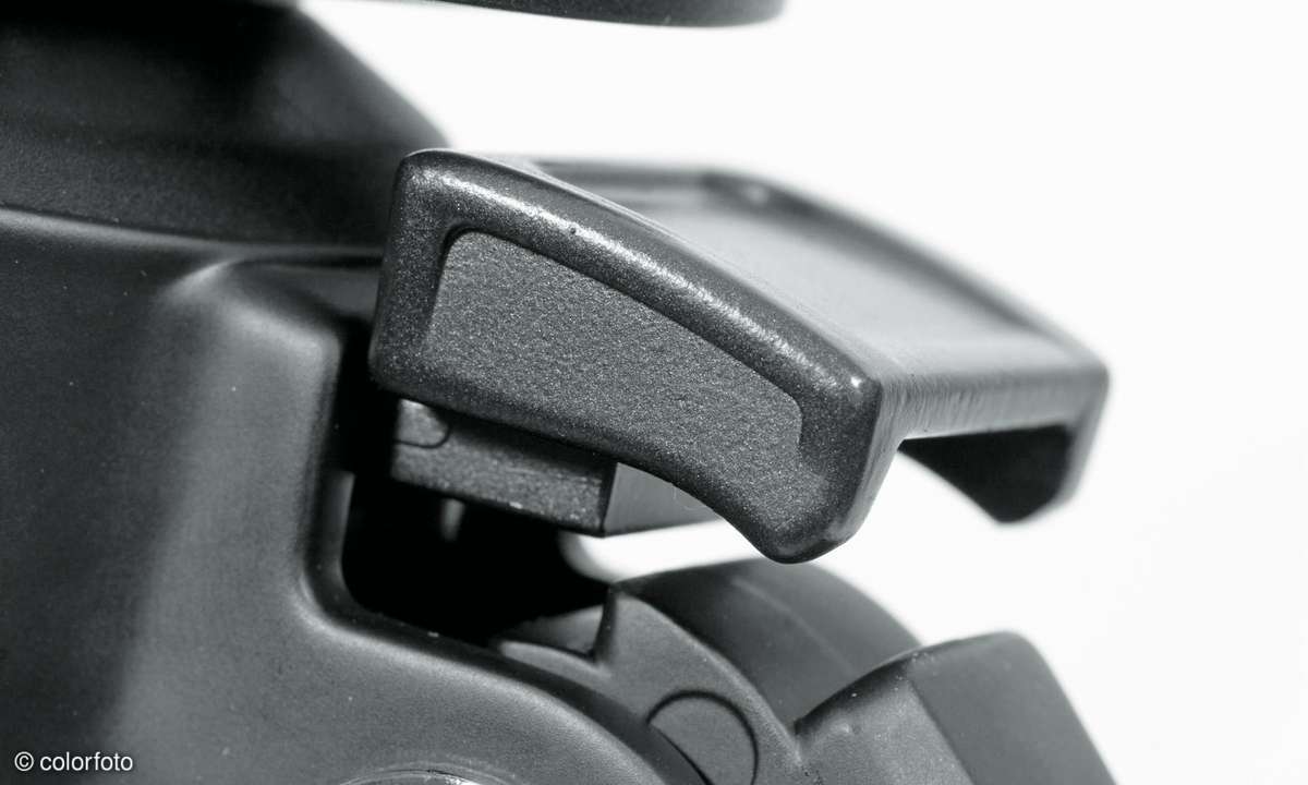 Für mehr Flexibilität sorgen drei Abspreizwinkel, die beim Einklappen automatisch einrasten. Die Mittelsäule kann verkehrt herum montiert werden und erreicht so locker den Boden - dafür müssen Fotografen jedoch den Verschluss mit Haken herausschrauben.
