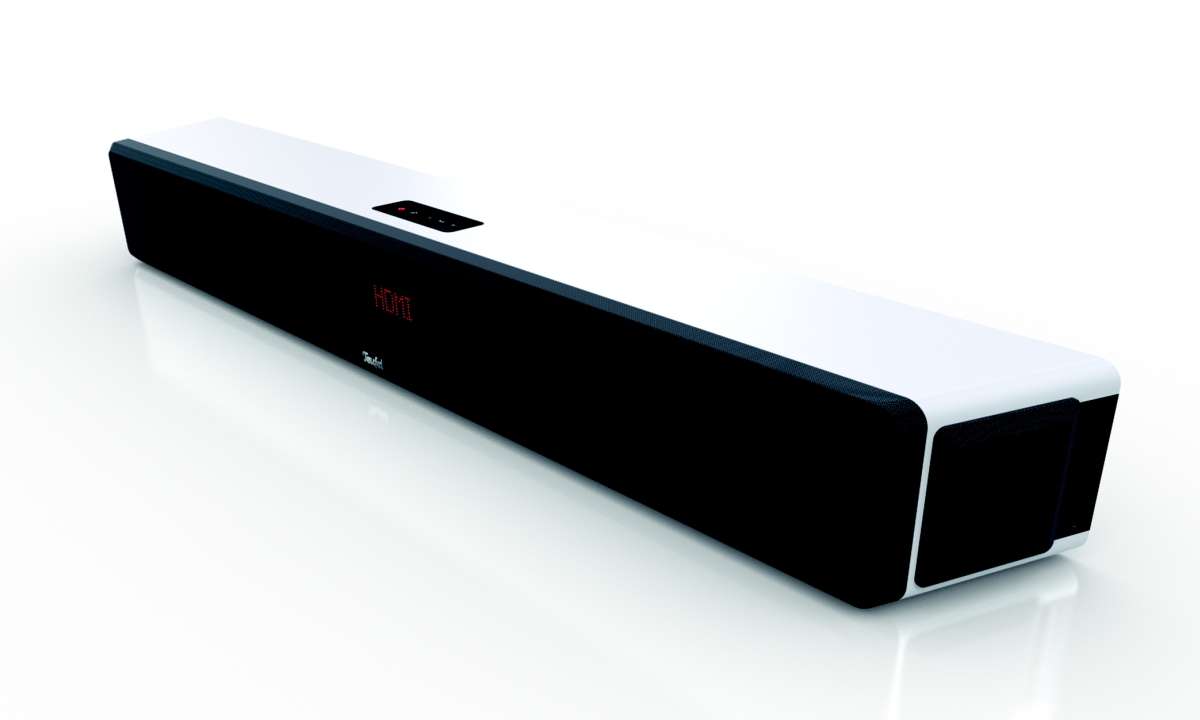 Doch ganz unten tummelt sich noch des Teufels Subwoofer. Der T10 ist eine smarte Konstruktion, die sich als Downfire- oder Frontfire-Subwoofer einsetzen lässt. Dazu lassen sich die großen Kunststoff-Standfüße entsprechend anschrauben. Der Markenschriftzug sitzt deshalb auf der Oberseite des Bassmoduls. Damit kann man ihn auch sehen, nachdem das durch Streben versteifte, matt folierte MDF-Gehäuse um 90 Grad nach vorne gekippt wurde. In dieser Downfiring-Stellung ist der 25-cm-Aluminium-Tieftöner samt Teufels strömungsoptimierten DPU-Bassreflex-Schlitz auf den Boden gerichtet. Wer den Kabelsalat im Umfeld des Teufel T10 eindämmen möchte, der findet ein integriertes Wireless-Subwoofer-Modul vor, mit dem sich die 150 Watt Sinus starke Class-D-Endstufe im Innern über kompatible AV-Komponenten drahtlos ansteuern lässt.