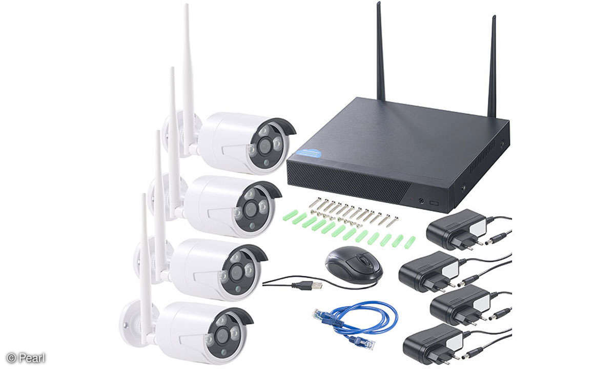 Kaum etwas ist unangenehmer als ein Einbruch. Um sich vor ungebetenen Gästen wirksam zu schützen, setzen Sie am Besten auf das Funk-Überwachungssystem von VisorTech, das Ihr Büro oder Ihr Haus mit insgesamt vier Kameras gleichzeitig überwacht. Herz des Systems ist ein Festplatten-Rekorder, der per Funk mit den Nachtsicht-fähigen Kameras gekoppelt ist und Ihre Räumlichkeiten in HD-Qualität im Auge behält. Natürlich erlaubt das System, das inklusive der Kameras bei Pearl für 199,90 Euro zu bekommen ist, auch einen Fernzugriff per Tablet oder Smartphone über das Internet. Die Funk-Reichweite zwischen Rekorder und Kameras beträgt im Freien übrigens bis zu 250 Meter, der Rekorder zeichnet dabei gleichzeitig von allen angeschlossenen Kameras auf. Die Profianlage unterstützt die Protokolle UPnP, SMTP, PPPoE sowie DHCP und beherrscht die H.264-Kompression für höchste Bildqualität bei geringem Speicherbedarf.