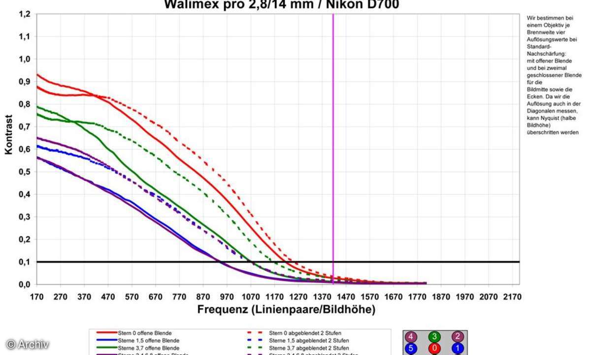 Eine Verzeichnung von 4,4 % lässt sich am Rechner aber nur dann mit vernünftigem Aufwand korrigieren, wenn sie nicht wie beim Walimex (350 Euro) wellenförmig ist - unser Messwert berücksichtigt nur die absolute Abweichung nicht jedoch die ungewöhnliche Form. Ebenso wird es schwierig, eine Vigne...